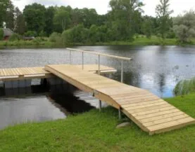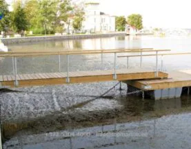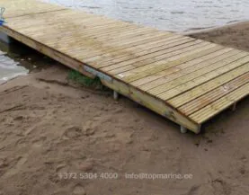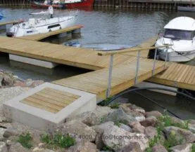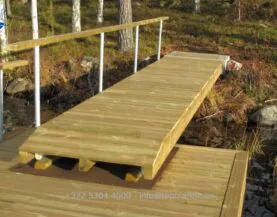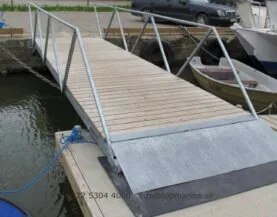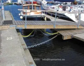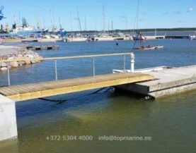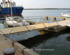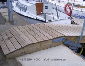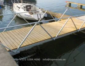 A marine gangway ensures comfortable and safe access to your boat, even when the water level changes. Our pontoon gangways are available in both wooden and metal constructions, designed for long‑lasting durability in marina environments.